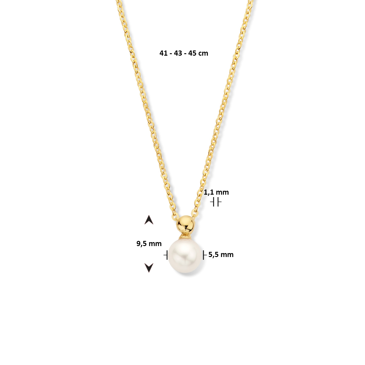 Klassiek geelgouden anker collier met draaglengtes van 41, 43 en 45 cm en 1.1mm breed uitgevoerd met een parel hanger van 9.5x5.5mm. Het collier is een prachtige basis voor een klassieke chique look en uit te breiden met parel sieraden uit onze collectie voor een perfecte klassieke uitstraling.