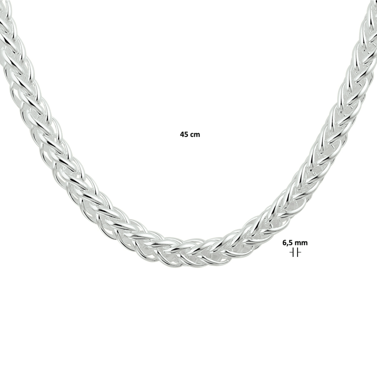 925 zilveren collier met vossestaart schakel. Het collier heeft een schakelbreedte van 6.5mm.
