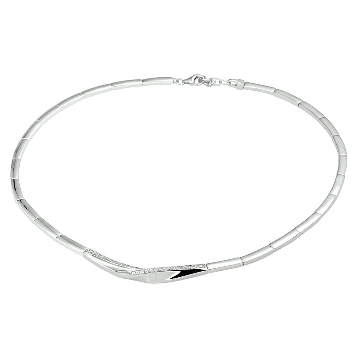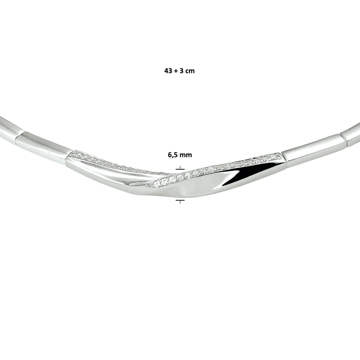 Zilveren collier met een draaglengte van 43cm en een extensie van 3cm. Met schitterende details zoals de sprankelende rij van zirkonia stenen en de poli afwerking. Uitgevoerd met een stevig karabijn slot. Tip: Combineer dit collier met bijpassende sieraden uit onze collectie.