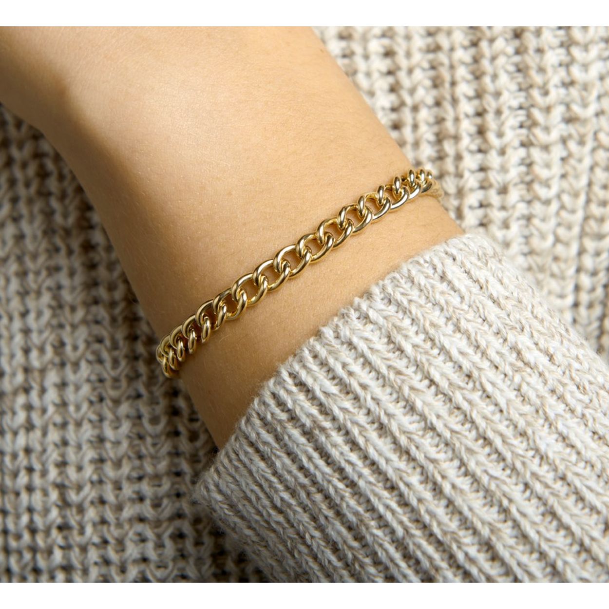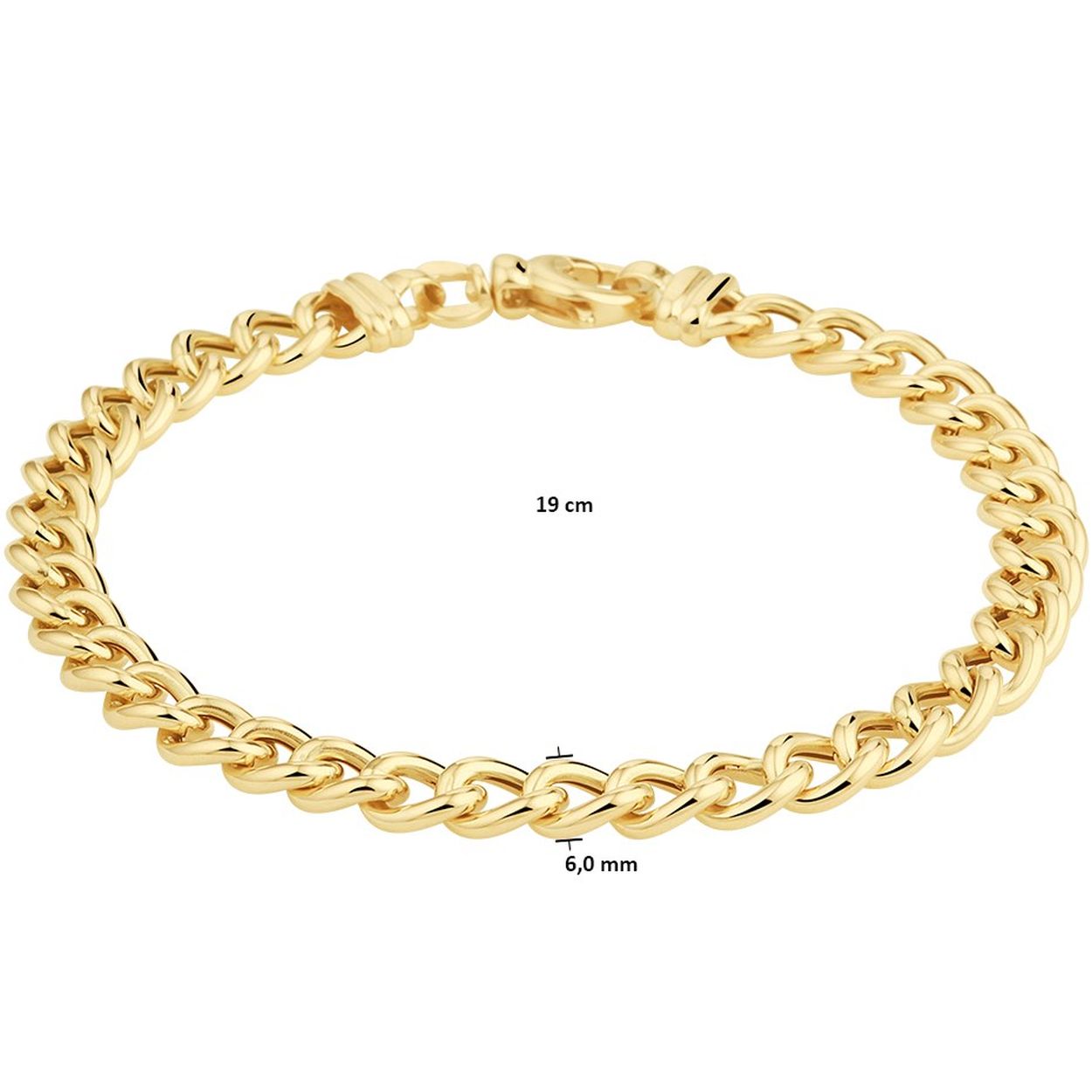 14k Geelgouden gourmet lengte artikel met een schakelbreedte van 6mm en een stevige karabijn sluiting.