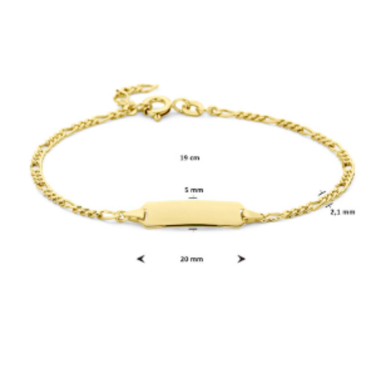 14k Geelgouden graveerarmband met een plaat van 5.0mm. De armband heeft een draaglengte van 16, 17, 18 en 19cm. De schakelbreedte is 2.1mm. Uitgevoerd met een veerslot.