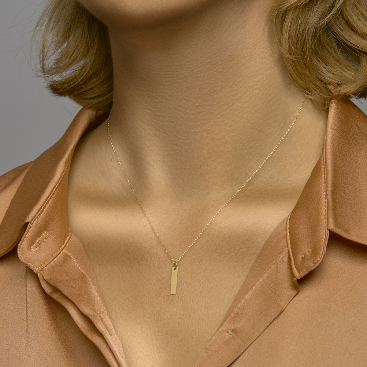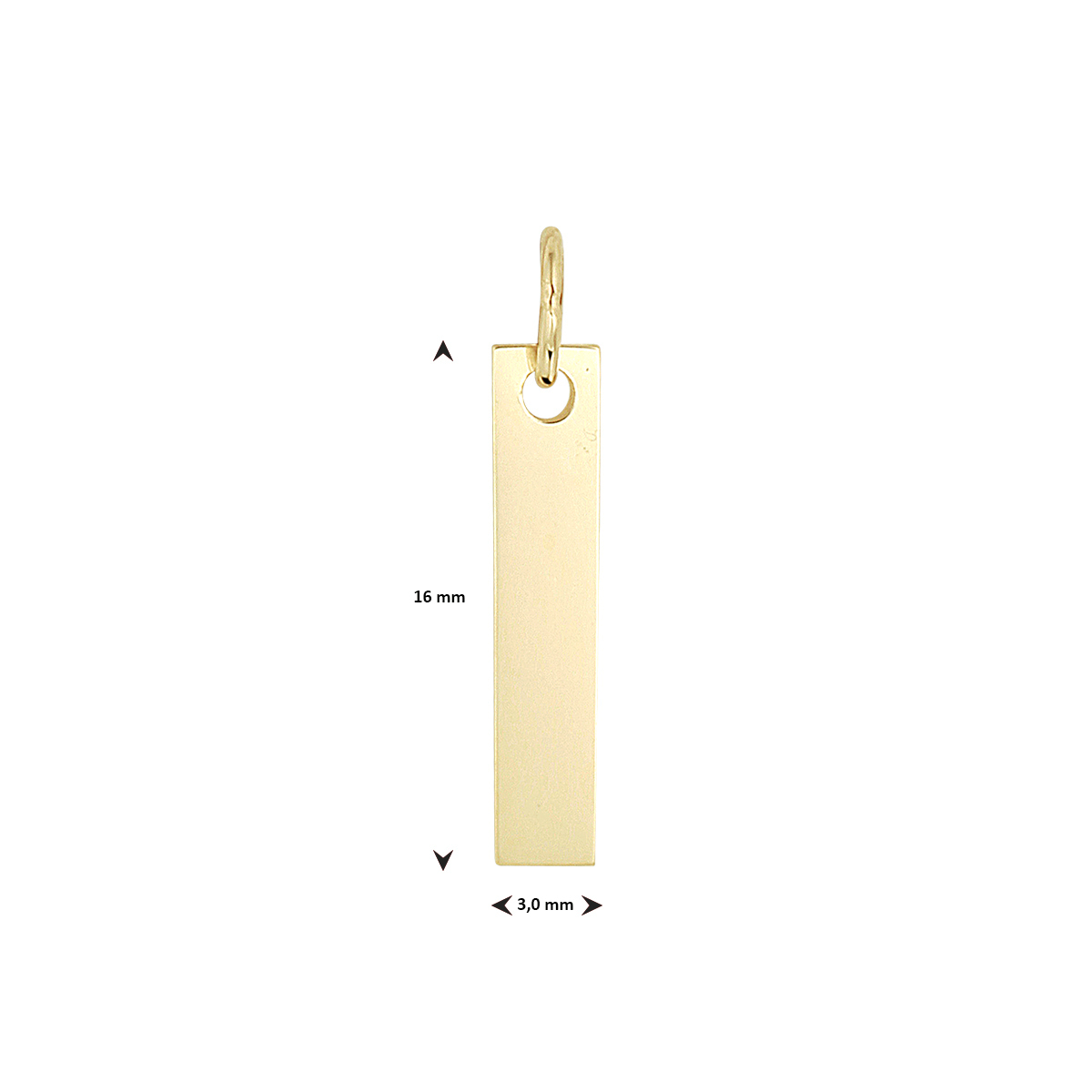14k Geelgouden graveerhanger met een afmeting van 16x3mm. De hanger heeft een dikte van 0.6mm.
