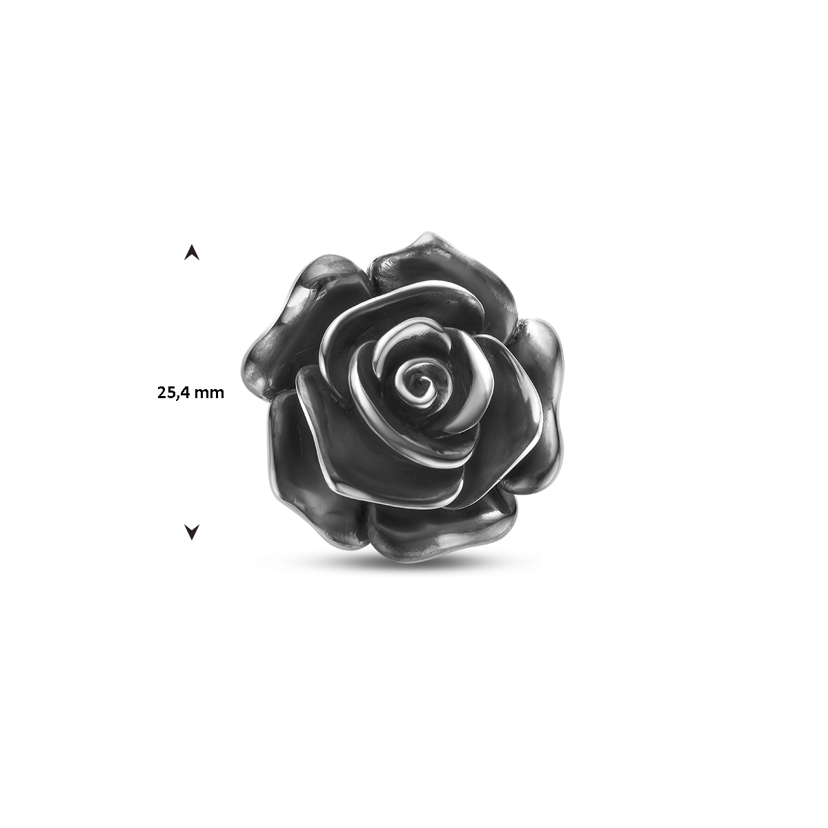 925 Geoxideerd zilveren hanger in de vorm van een roos. De hanger heeft een diameter van 25.4mm.