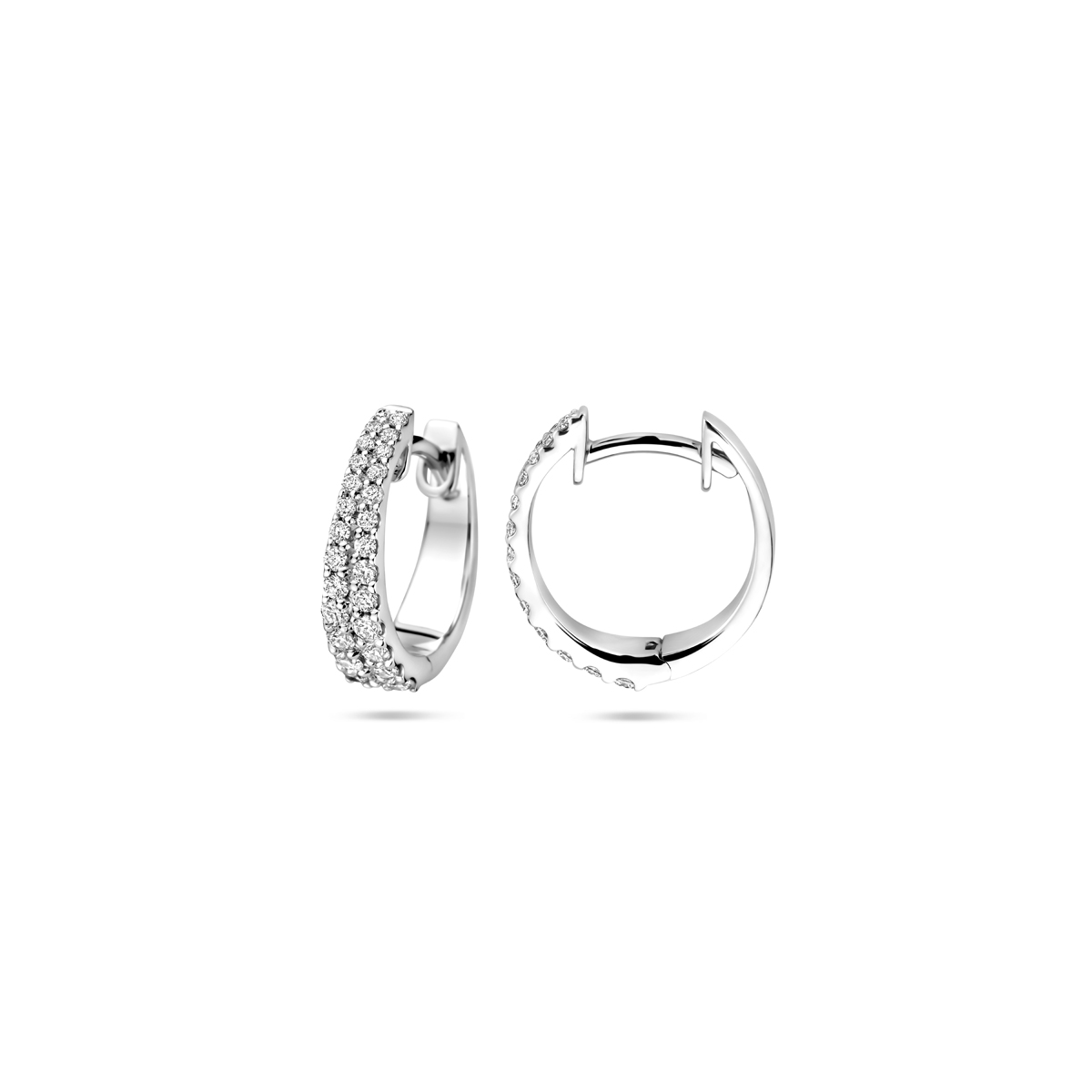 14k Witgouden klapoorringen uitgevoerd met diamant. De klapoorringen hebben een buisdikte van 3.5mm.