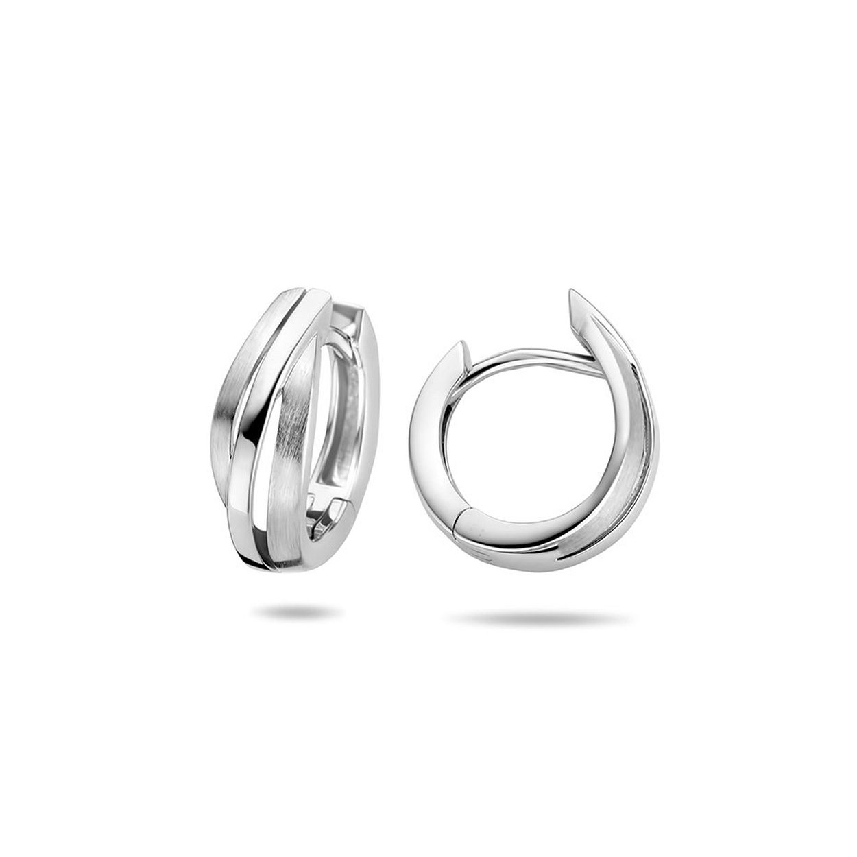 Gerhodineerd 925 zilveren klapoorringen uitgevoerd met een poli/matte afwerking. De oorringen hebben een afmeting van 13x5mm.