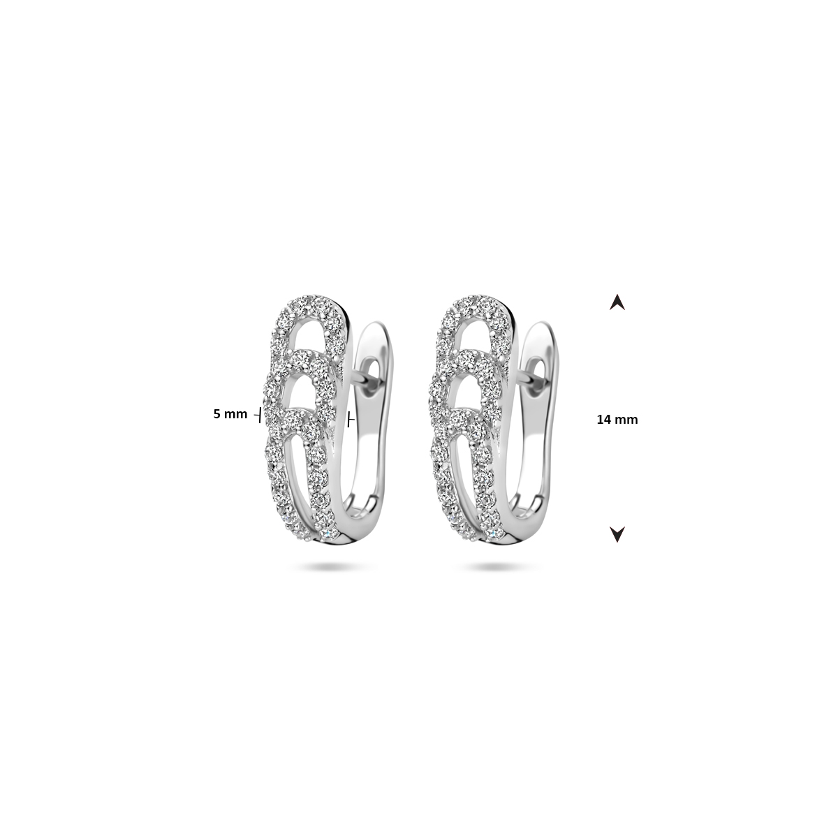 Gerhodineerd 925 zilveren klapoorringen met een hoogte van 14mm. De oorringen zijn uitgevoerd met zirkonia.
