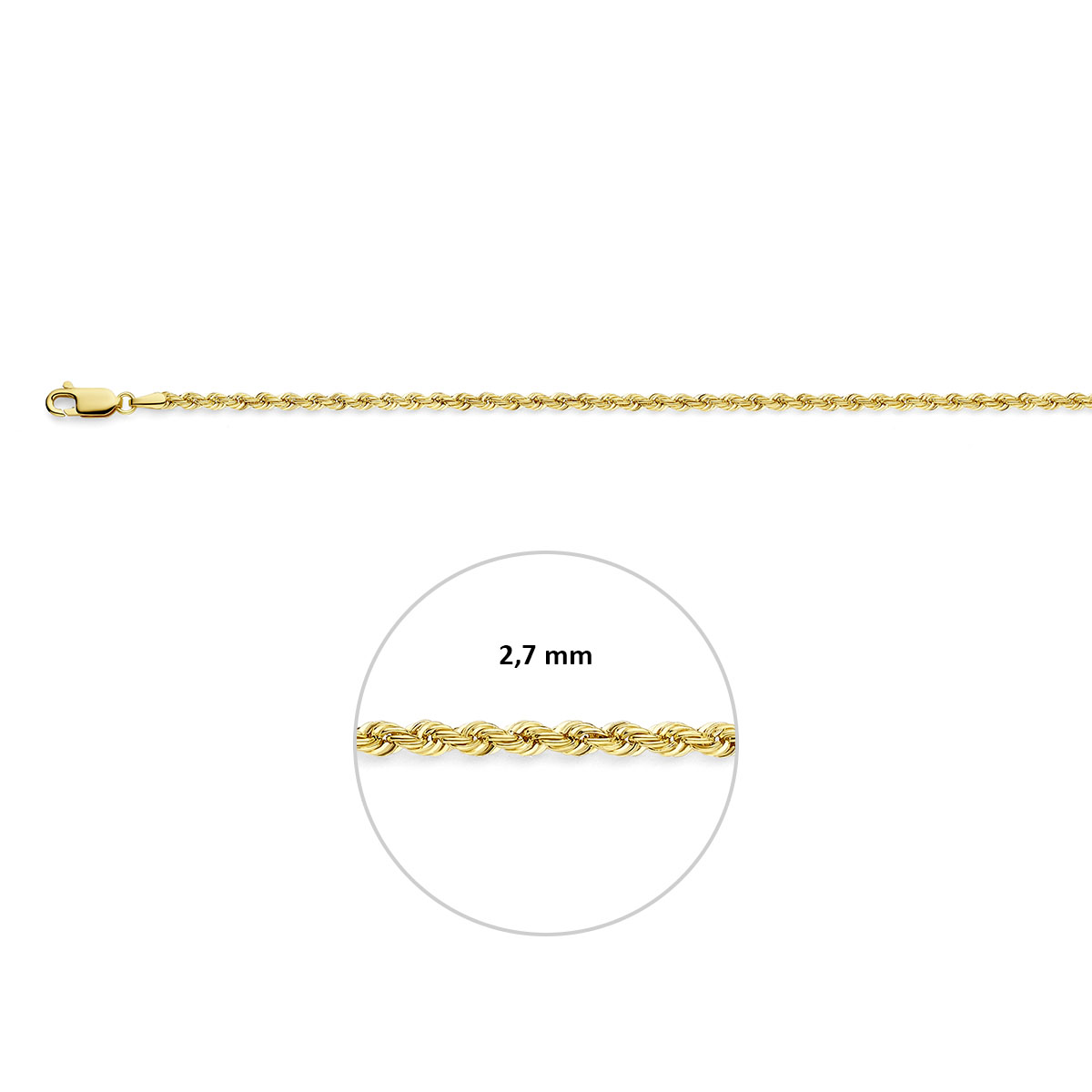 14k Geelgouden lengte artikel met koord schakel. De schakelbreedte is 2.7mm.