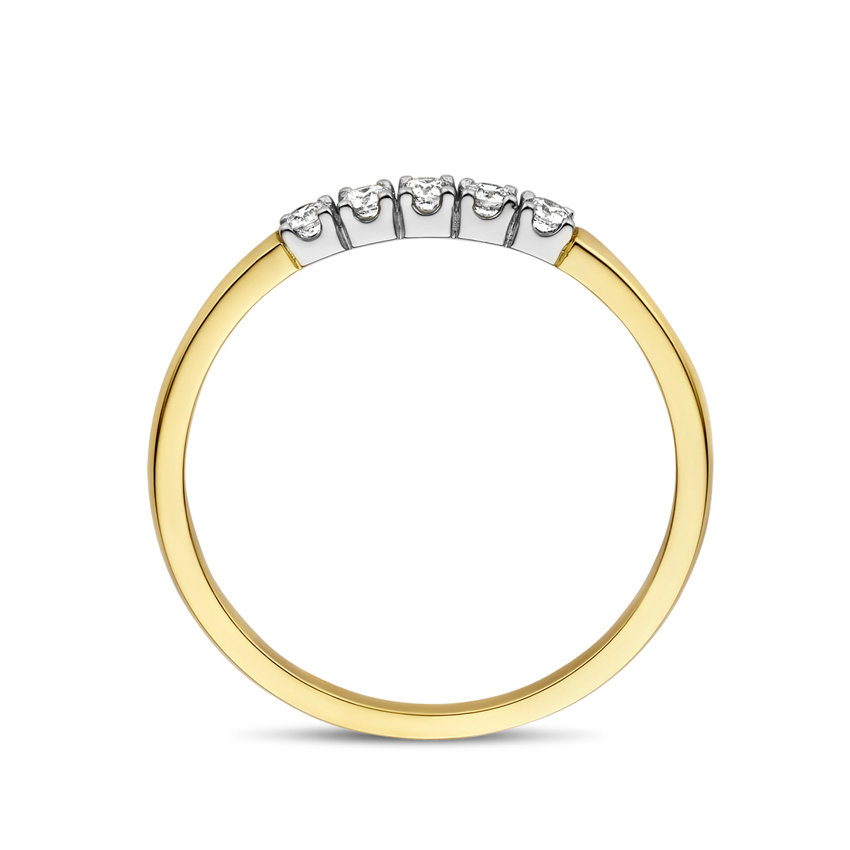 14k Bicolor geel- en witgouden ring uitgevoerd met een diamant rij. De ring heeft een breedte van 2mm.