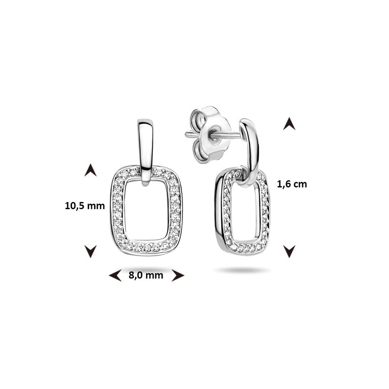 14k Witgouden oorhangers uitgevoerd met een schitterende diamant rij. De oorhangers hebben een totale hoogte van 1.6cm en een breedte van 8mm.
