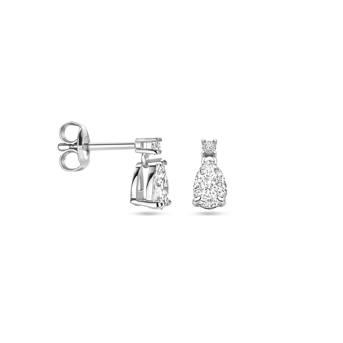 Gerhodineerd 925 zilveren oorhangers uitgevoerd met zirkonia. De oorhangers hebben een totale hoogte van 9mm.