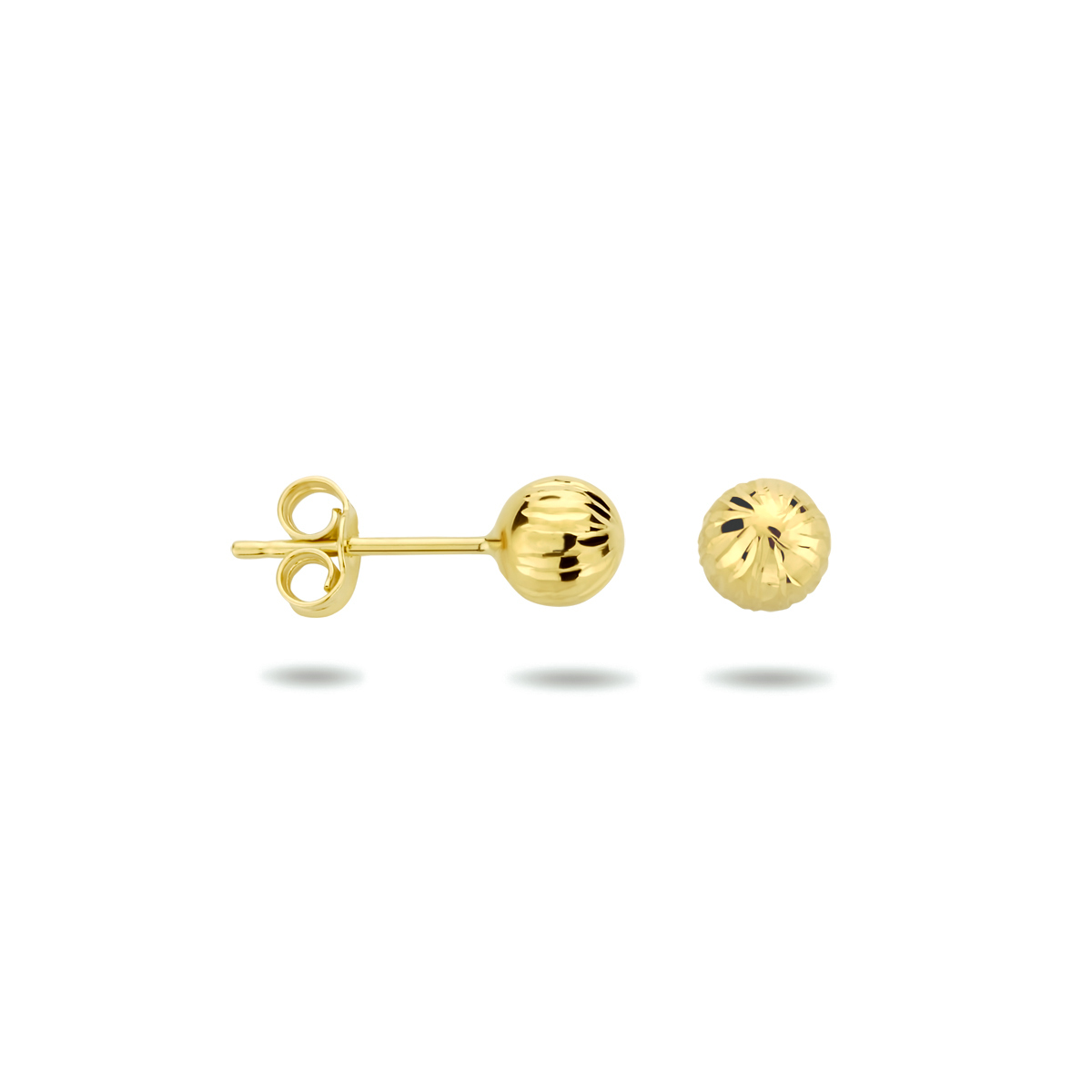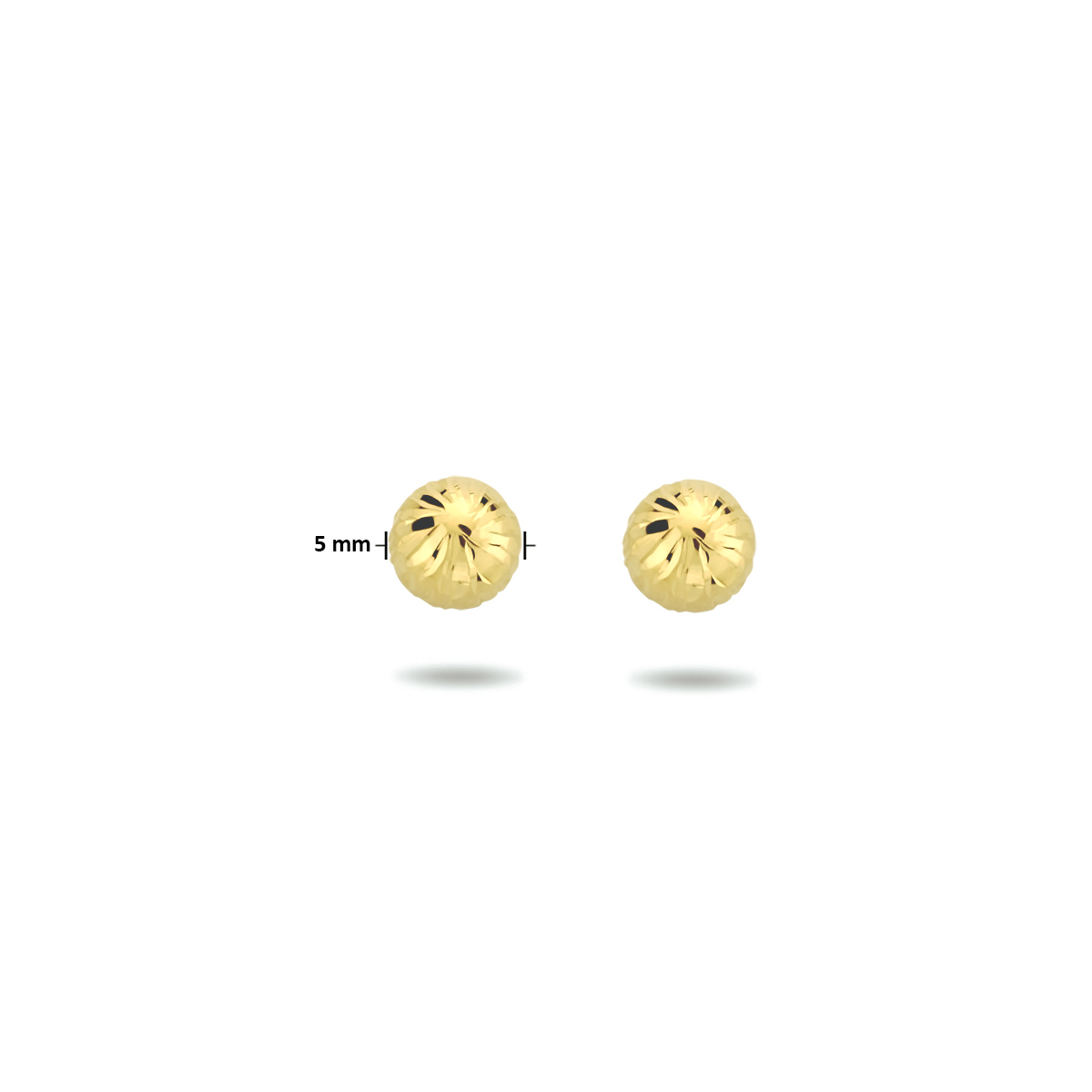 14k Geelgouden oorknoppen uitgevoerd met een gediamanteerde afwerking. De oorknoppen hebben een diameter van 5mm.