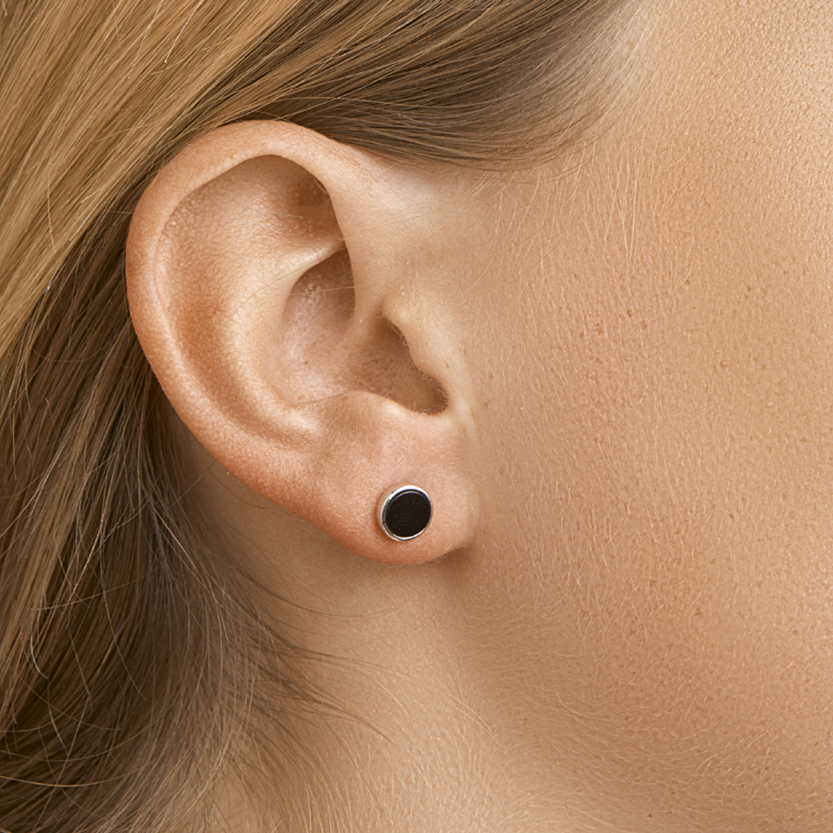 Gerhodineerd zilveren oorknoppen met een diameter van 7.5mm uitgevoerd met onyx in een zetkast en stevige poussette sluiting. De oorknoppen zijn te combineren met bijpassende sieraden uit onze collectie. De oorknoppen zijn ook verkrijgbaar met parelmoer.