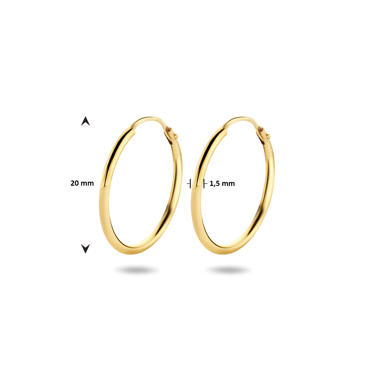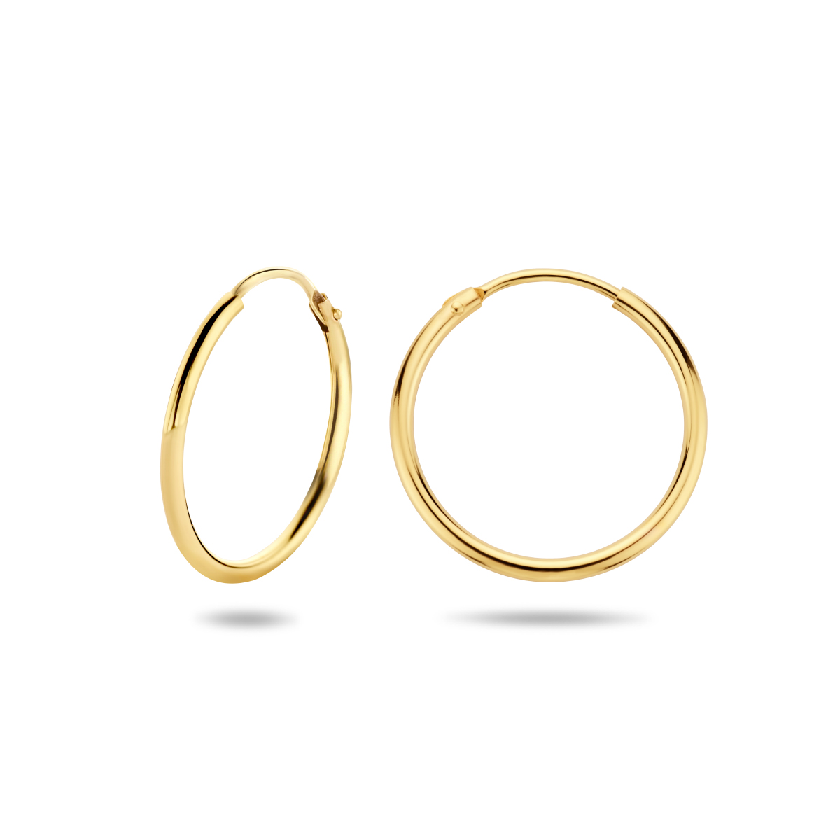 Geelgouden oorringen met een ronde buis en een scharnier-sluiting.
