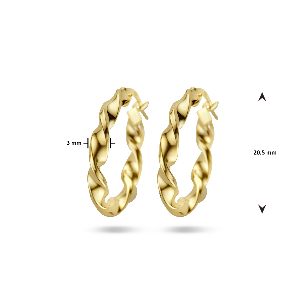 14k Geelgouden oorringen met een dikte van 3mm.