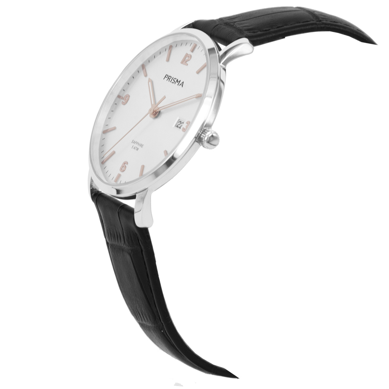 - wijzerplaat zilver met roségoudkleurige streepjes