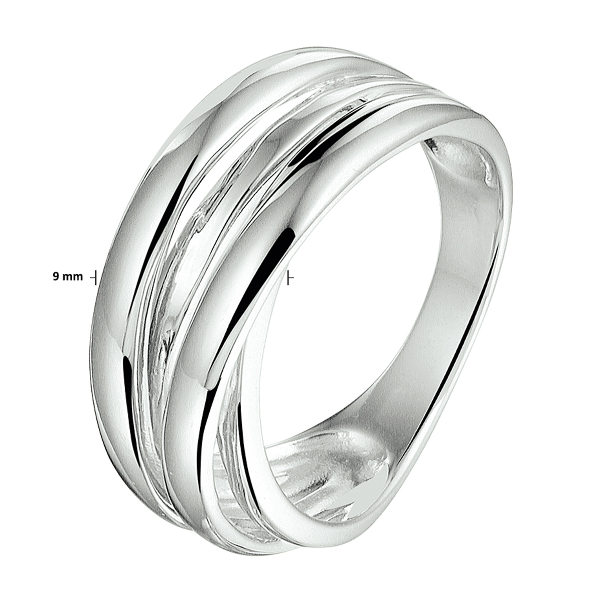 Stijlvolle gerhodineerd zilveren ring met een breedte van 9mm. Tip: Combineer deze ring met bijpassende sieraden uit onze collectie of vanuit je eigen stash en creeer zo elke keer weer een nieuwe look. Info: Gerhodineerd zilver is door de rhodiumlaag beter bestand tegen verkleuren en krassen.