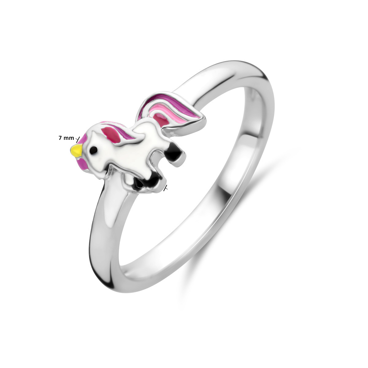 Gerhodineerd 925 zilveren ring uitgevoerd met een eenhoorn. De ring heeft een breedte van 7mm.