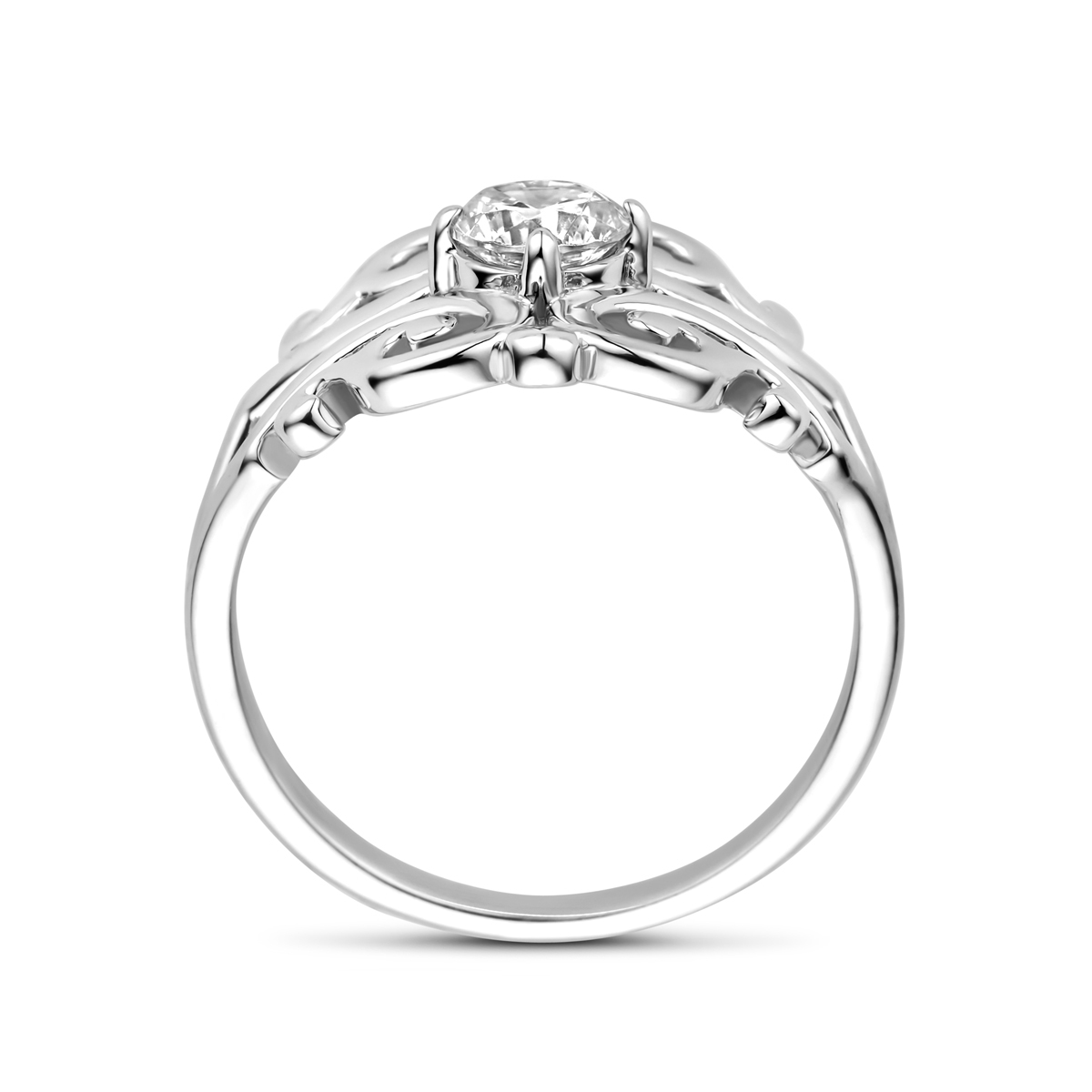 Gerhodineerd 925 zilveren filigrain ring, uitgevoerd met zirknia. De ring heeft een breedte van 13.5mm.