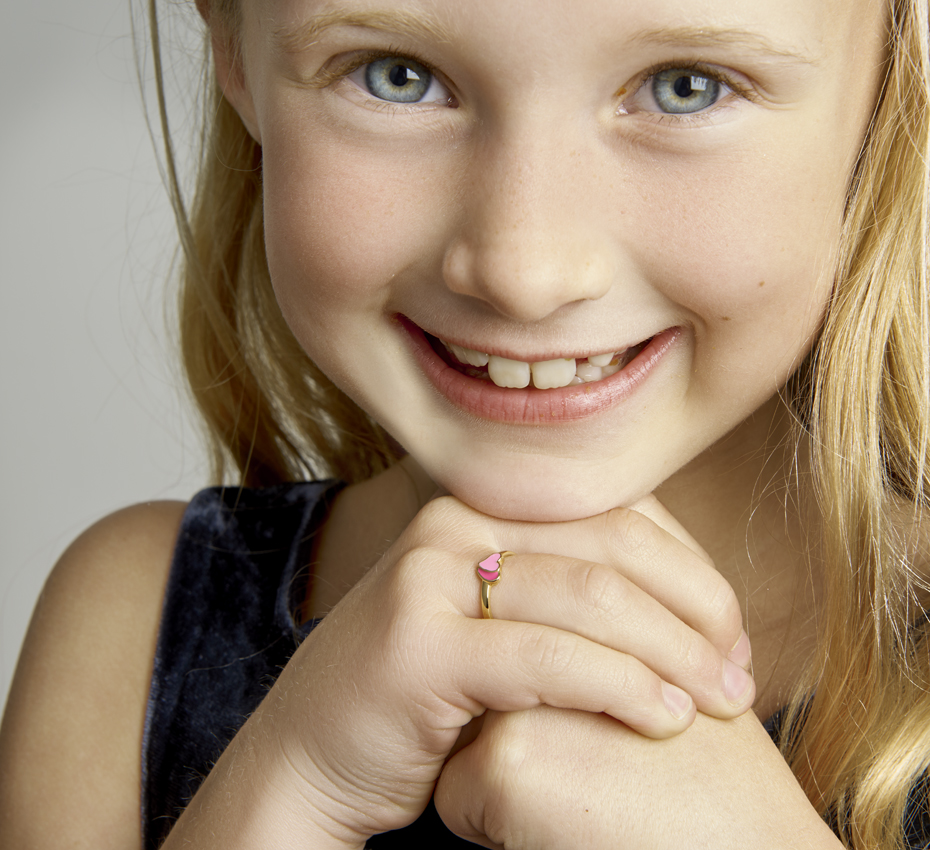 Schattige gerhodineerd zilveren hartjes ring met een breedte van 5.5mm. Uitgevoerd met roze emaille. Deze ring is perfect te combineren met bijpassende sieraden uit onze collectie. Tip: Leuk om kado te geven! Info: Gerhodineerd zilver is door de rhodiumlaag beter bestand tegen verkleuren en krassen.