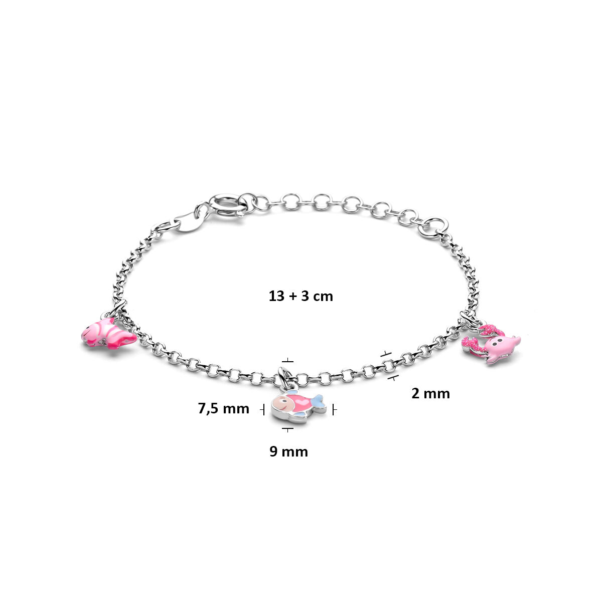 Gerhodineerd 925 zilveren armband uitgevoerd met zeedieren. De armband heeft een draaglengte van 13cm met 3cm extensie.