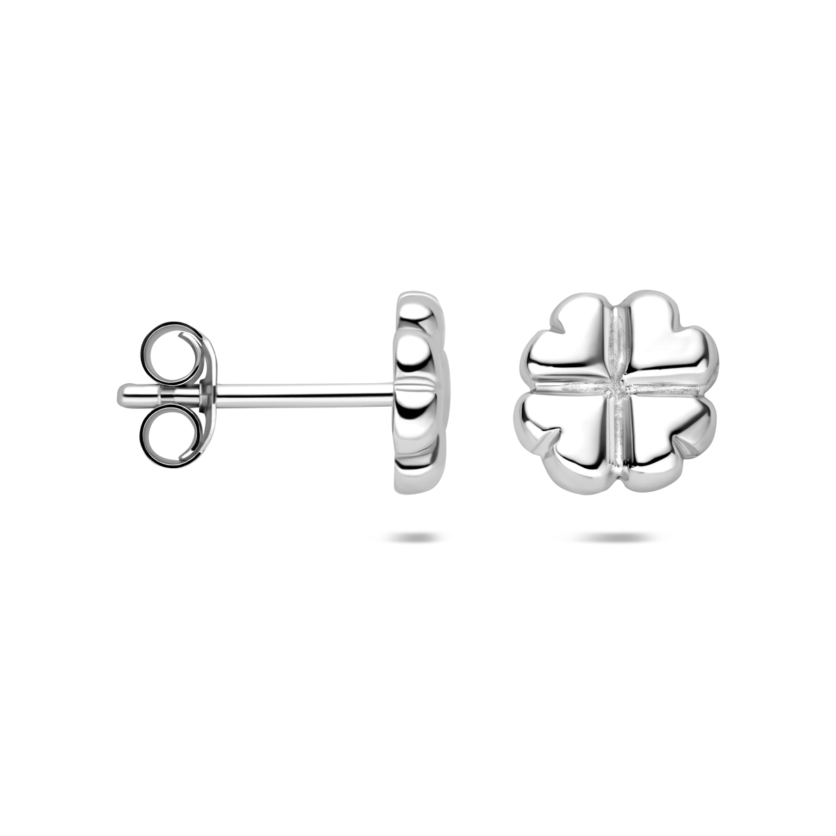 Gerhodineerd 925 zilveren oorknoppen uitgevoerd in de vorm van een klavertje.