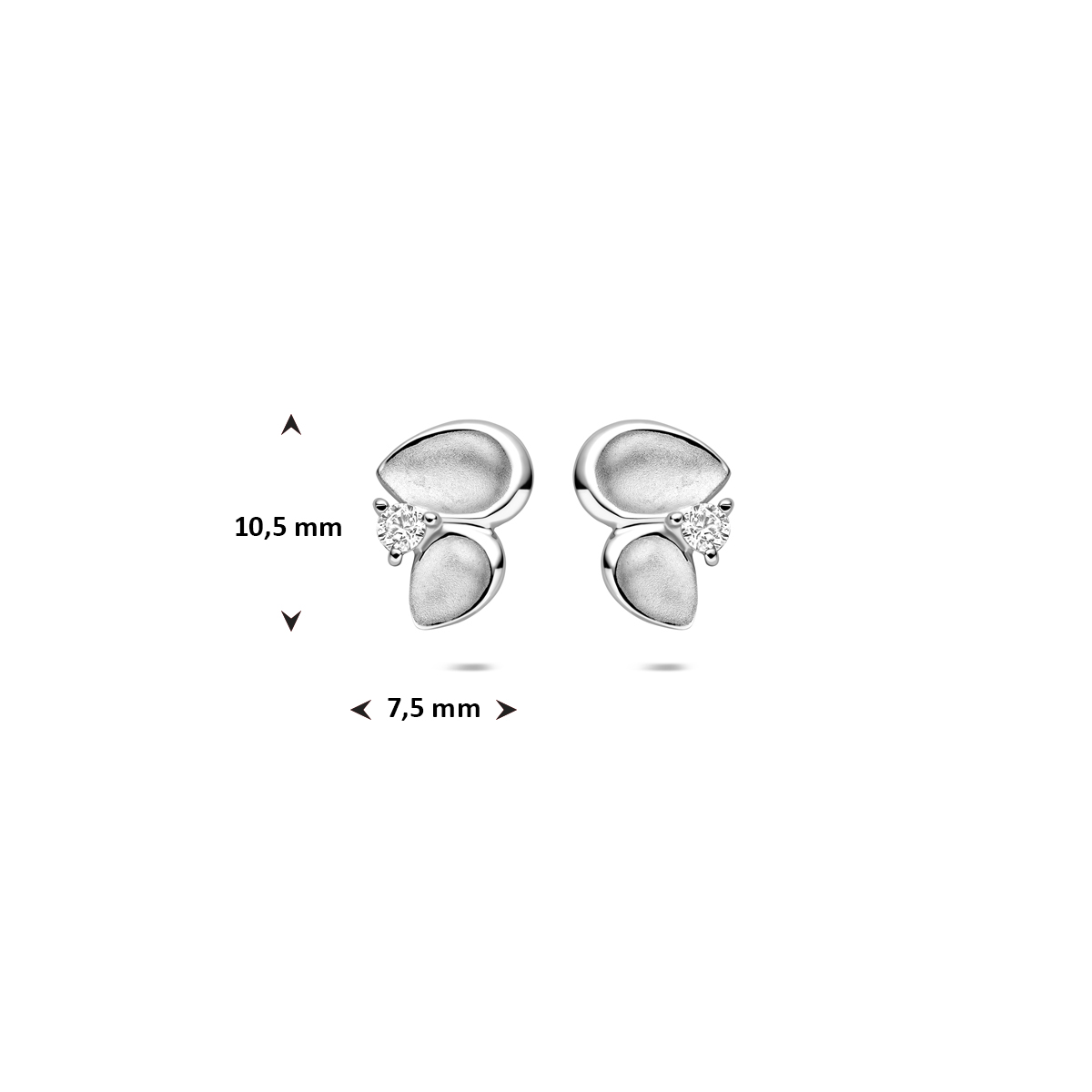 Gerhodineerd 925 zilveren oorknoppen uitgevoerd met zirkonia. De oorknoppen hebben een afmeting van 10.5x7.5mm.