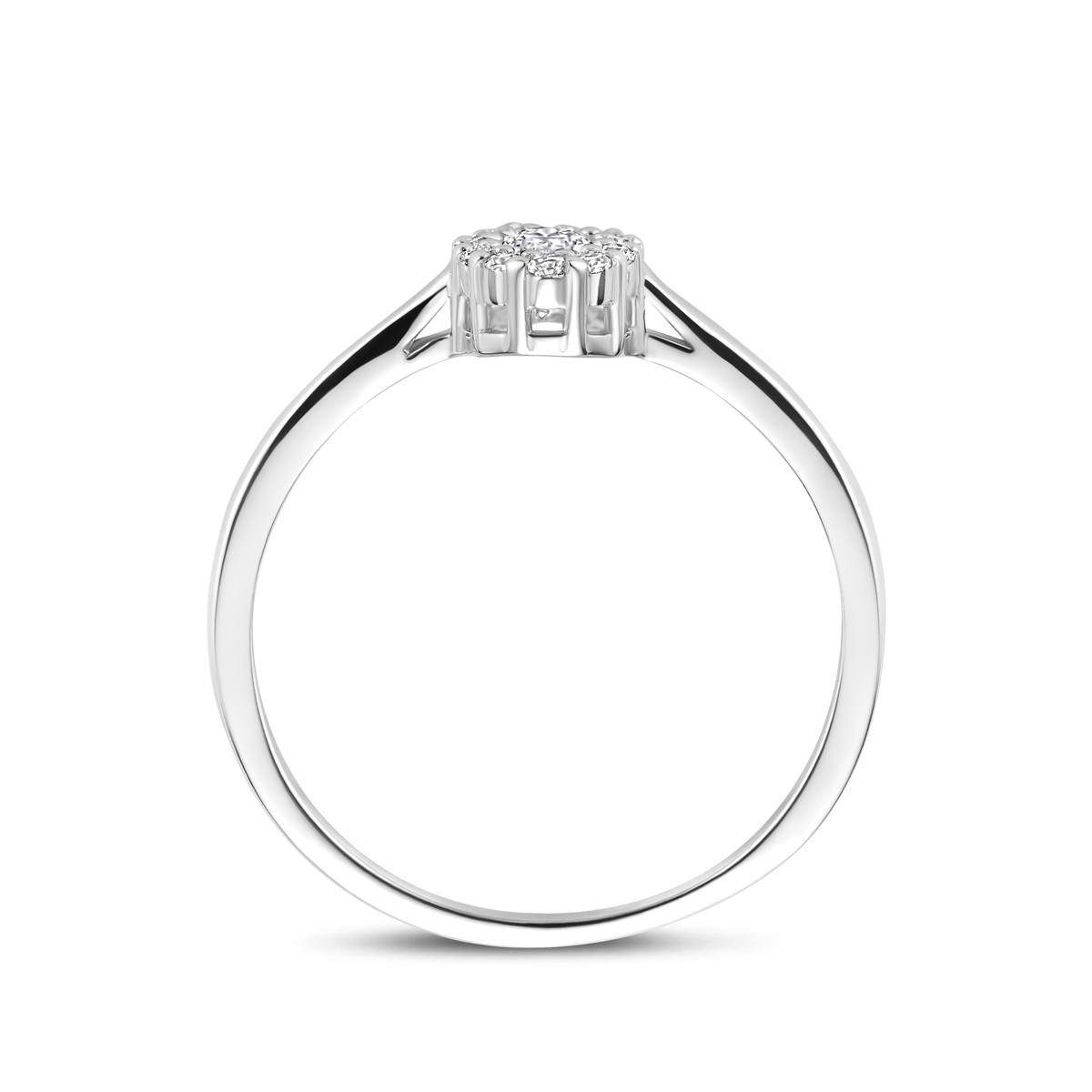 Gerhodineerd 925 zilveren ring uitgevoerd met zirkonia. De ring heeft een afmeting van 8x6mm.