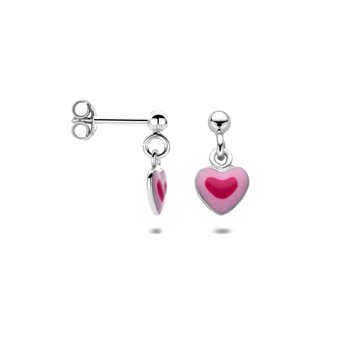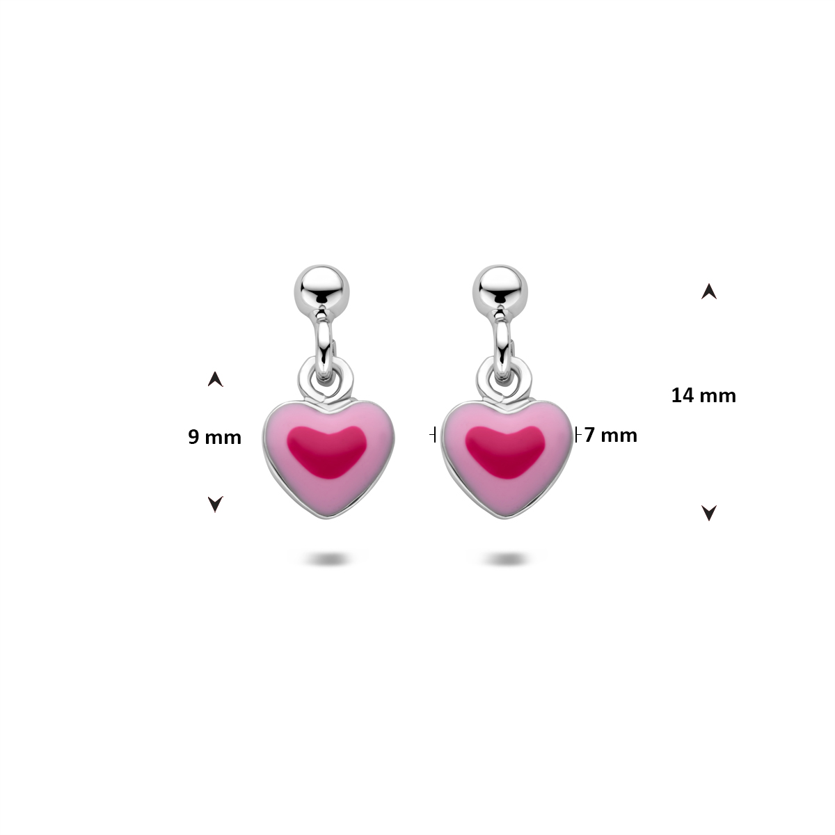 Gerhodineerd 925 zilveren oorhangers in de vorm een hartje. De oorhangers hebben totale hoogte van 14mm.