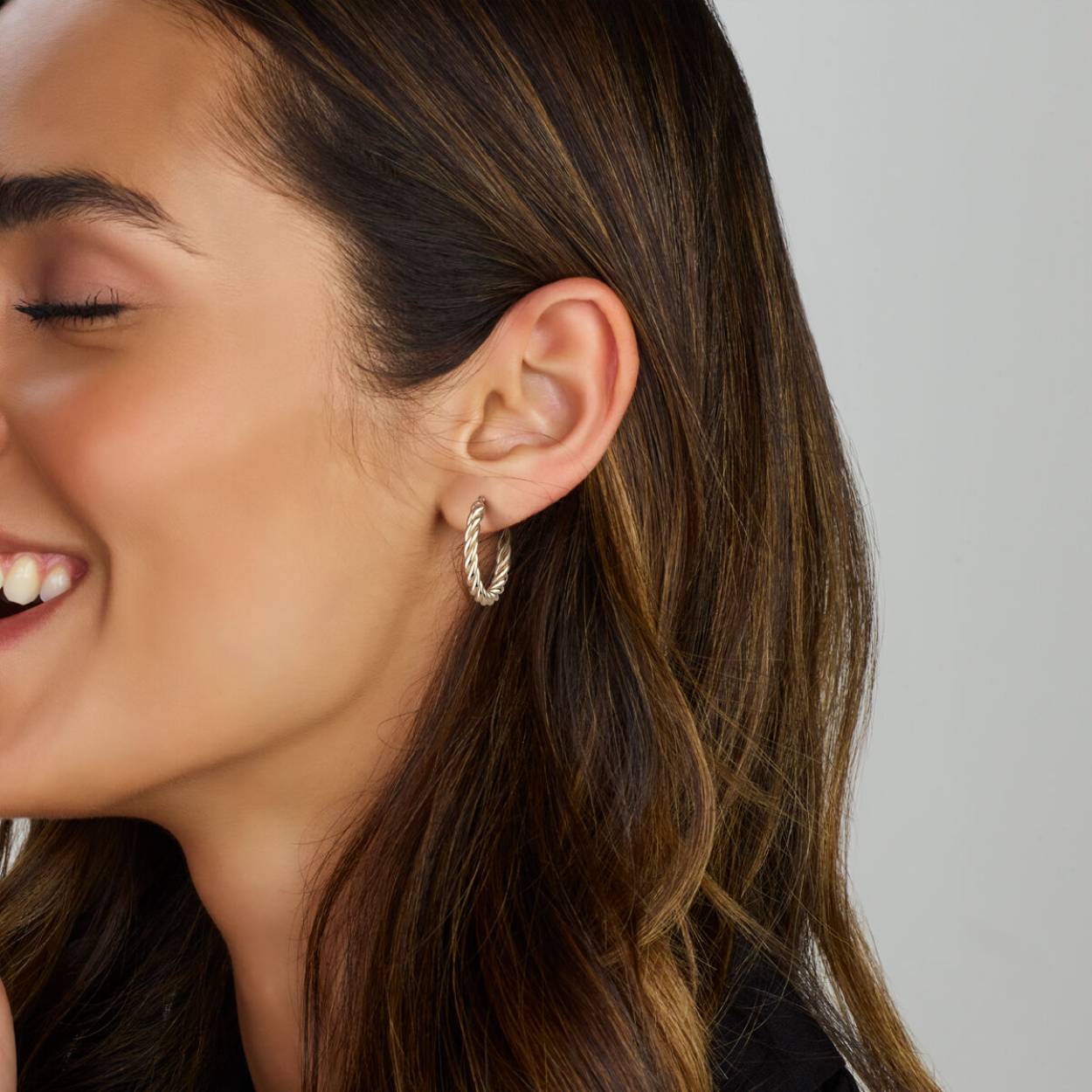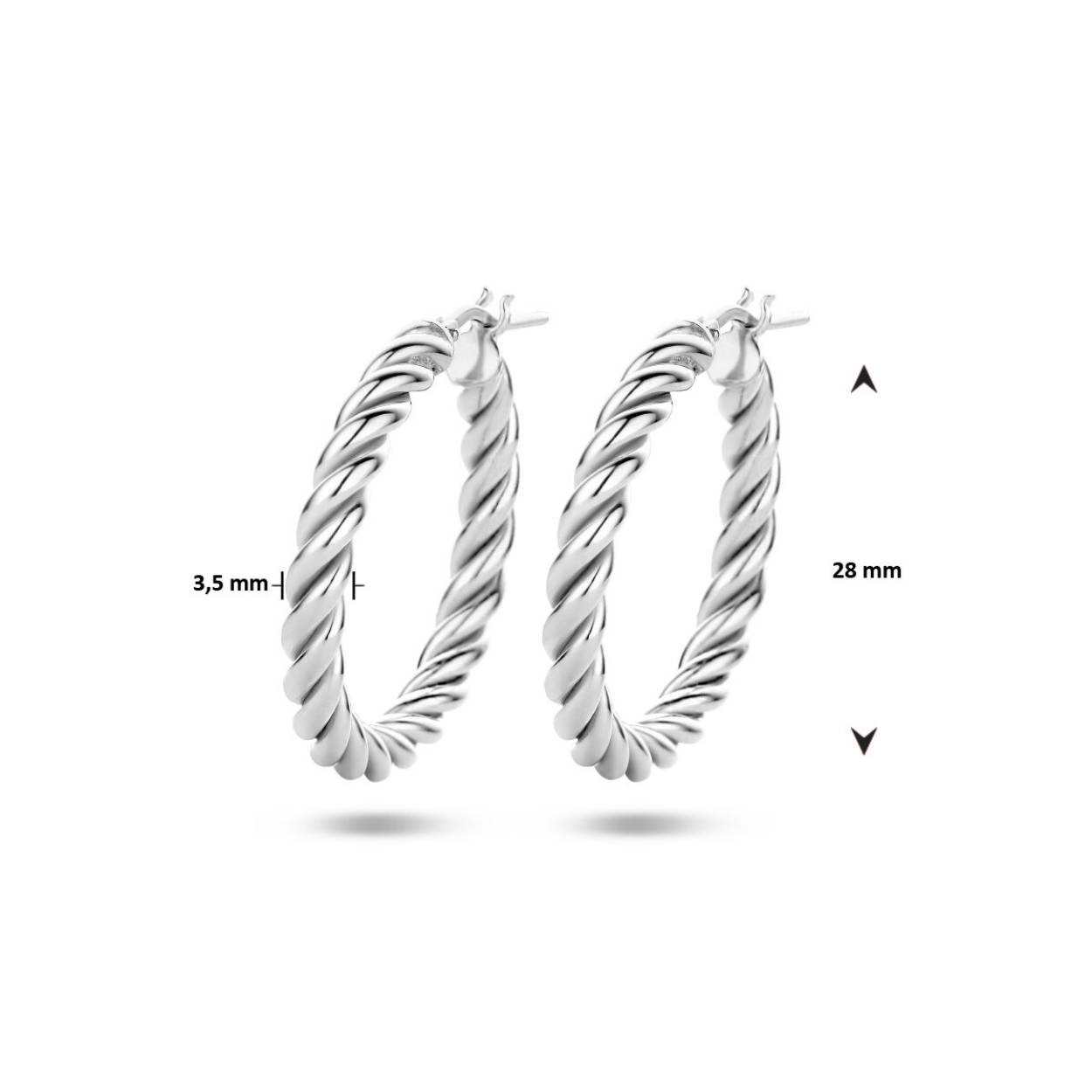 Zilveren oorringen met een 'gedraaide' afwerking. De oorringen zijn voorzien van een hefboomsluiting