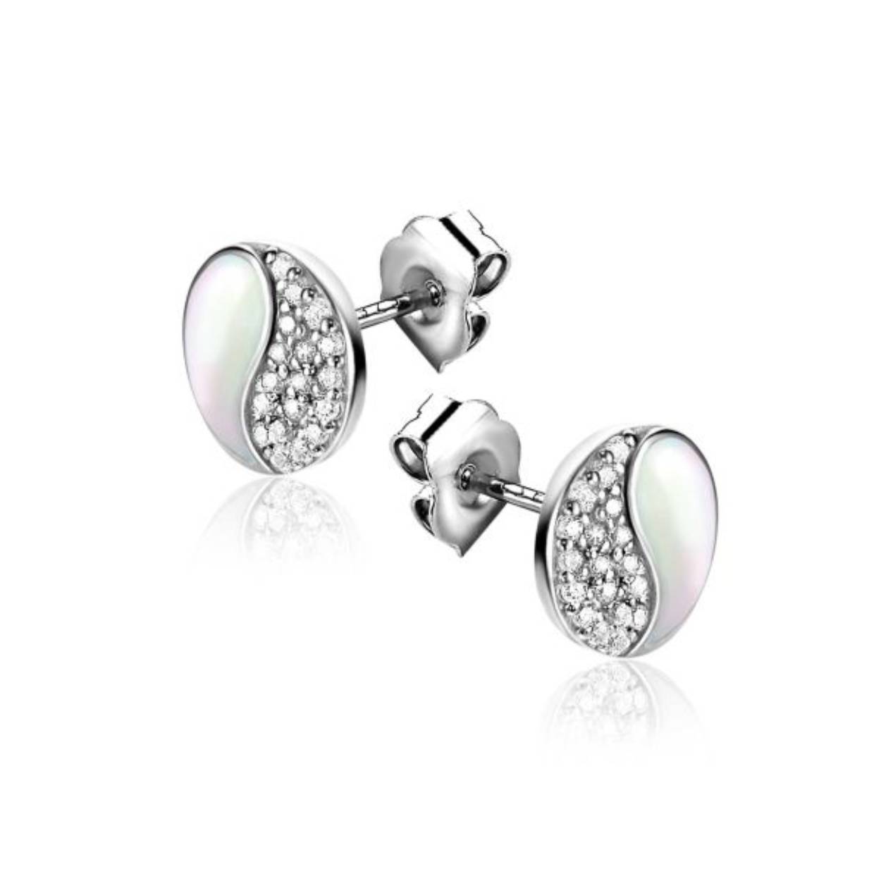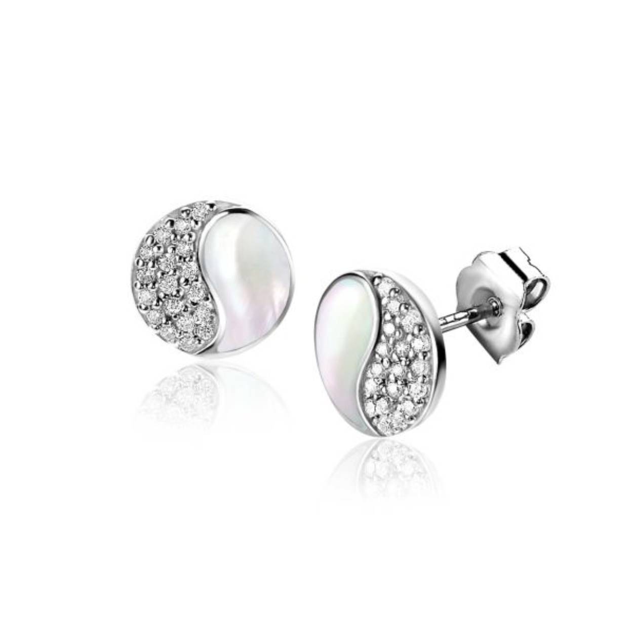 9mm ZINZI zilveren Yin Yang oorstekers, bezet met parelmoer en witte zirconia's. Yin Yang staat symbool voor: balans, harmonie, dynamiek en verbondenheid ZIO2423